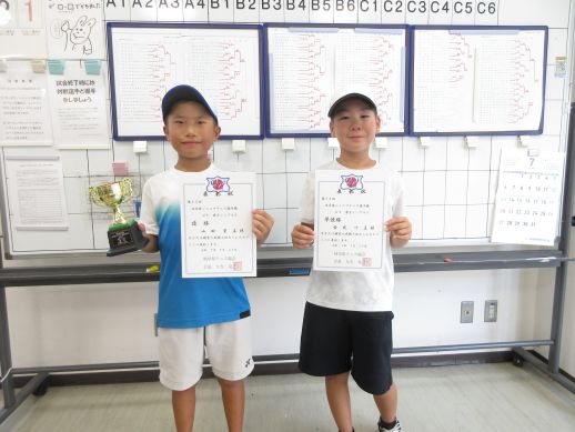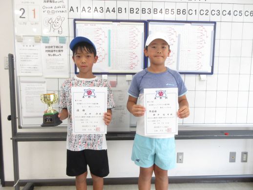 ![]() U9男子シングルス(左より) 優勝 山田蒼真 選手 (WiM 岐阜) 準優勝 金武叶真 選手 (WiM 岐阜) |