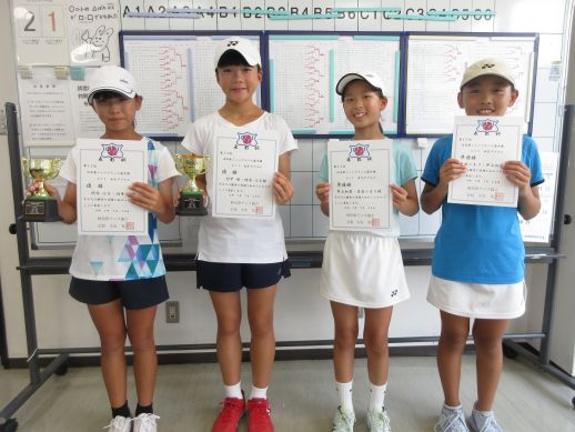 ![]() U11女子ダブルス(左より) 優勝 河合はな 選手・竹中 唯 選手 (関スポーツ塾T ・岐阜西TC) 準優勝 井上裕莉 選手・夏目ひまり 選手 (岐阜インターナショナルTC) |