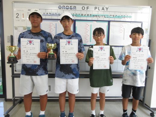![]() U13男子ダブルス(左より) 優勝 塚本望來斗 選手・佐々木春輔 選手 (岐阜西TC・LinkTS) 準優勝 池田拓斗 選手・池田 蓮 選手 (HIDE TA) |