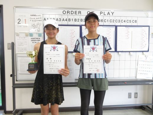![]() U13女子シングルス(左より) 優勝 中田茉梨愛 選手 (岐阜インターナショナルTC) 準優勝 酒井陽毬 選手 (関スポーツ塾.T) |