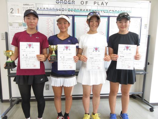 ![]() U13女子ダブルス(左より) 優勝 竹中 彩 選手・中田芙梨愛 選手 (岐阜西TC・岐阜インターナショナルTC) 準優勝 安江杏心 選手・木村虹心 選手 (テニスラウンジ・岐阜西TC) |