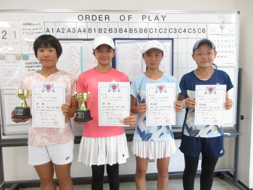 ![]() U13女子ダブルス(左より) 優勝 竹中 彩 選手・中田芙梨愛 選手 (岐阜西TC・岐阜インターナショナルTC) 準優勝 安江杏心 選手・木村虹心 選手 (テニスラウンジ・岐阜西TC) |